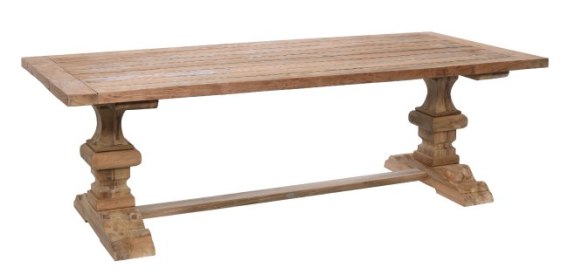 Drewniany stół ogrodowy Bali o wymiarach 240x100cm i wysokości 77cm. Bali to stół w naturalnym kolorze drewna tekowego (pozyskanego z recyklingu), przez co prezentuje się elegancko, w każdej aranżacji. Zastosowanie drewna tekowego, które zawiera w sobie substancje oleiste, sprawia, że stół jest trwały i wytrzymały, dobrze znosi promieniowanie UV, a także wilgotność. Prostokątny blat, a także dwie, łączone na dole nogi z delikatnymi zdobieniami nadają całości niepowtarzalnego stylu. Stół ogrodowy Bali świetnie sprawdzi się w klasycznych, a także rustykalnych aranżacjach. Drewno Teakowe: Teczyna to gatunek drewna, pochodzący z Azji, tworzący tam bujne lasy monsunowe. Drzewo osiąga wiek około 200 lat i wysokość do 46 metrów. Teczyna może być uprawiana również na plantacjach. To jeden z najbardziej uniwersalnych i wytrzymałych gatunków drewna egzotycznego. Odporne na działanie czynników atmosferycznych. Drewno nie nasiąka wodą, oraz wykazuje wysoką odporność na działanie detergentów. Jest bogate w krzemionkę, oraz oleje impregnujące je, stąd jego wybitne właściwości. Pierwotnie drewno tekowe jest koloru złotobrązowego. Z czasem brązowieje, ma kolor określany i porównywany do koloru koniaku. Jeśli teczyna stoi na zewnątrz w deszczu i pod wpływem wszelkiego rodzaju warunków pogodowych, z czasem nabiera charakterystycznego, szarego koloru. Można tego uniknąć konserwując drewno tekowe. Wyjątkowość drewna tekowego : Z łatwością znosi wilgoć, słońce, mróz i zmiany temperatury. Odpowiednie zwłaszcza do stałego użytku zewnętrznego i są wysoce wytrzymałe Zawiera w sobie wiele substancji oleistych. W związku z tym jego olejowanie nie musi być konieczne Cechują się długą żywotnością Drewno tekowe nie zmienia objętości wysychając, nie pęcznieje i nie paczy się Dodatkowo w zalety wpisuje się odporność na grzyby i korniki, pod warunkiem, że drewno to jest odpowiednio zakonserwowane Teak nie da się również pleśni, czy roztworom chemicznym Zobacz też: