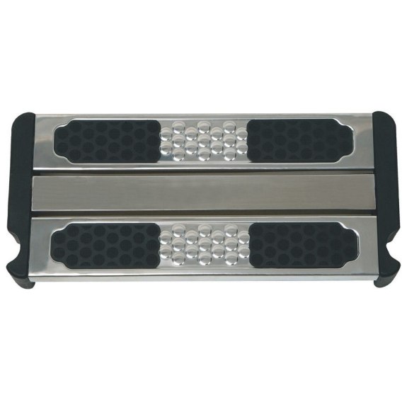 Szeroki stopień do drabinek Hayward. Wykonany ze stali nierdzewnej AISI 316, odpornej na korozję, promieniowanie UV i odczynniki chemiczne. Dodatkowo sprzedawane są antypoślizgowe nakładki na stopnie. Zestaw zawiera śruby montażowe.